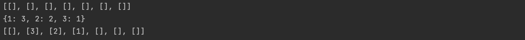 bucket = [[] for i in range(len(nums)+1)] # [[], [], [], [], [], [], []]